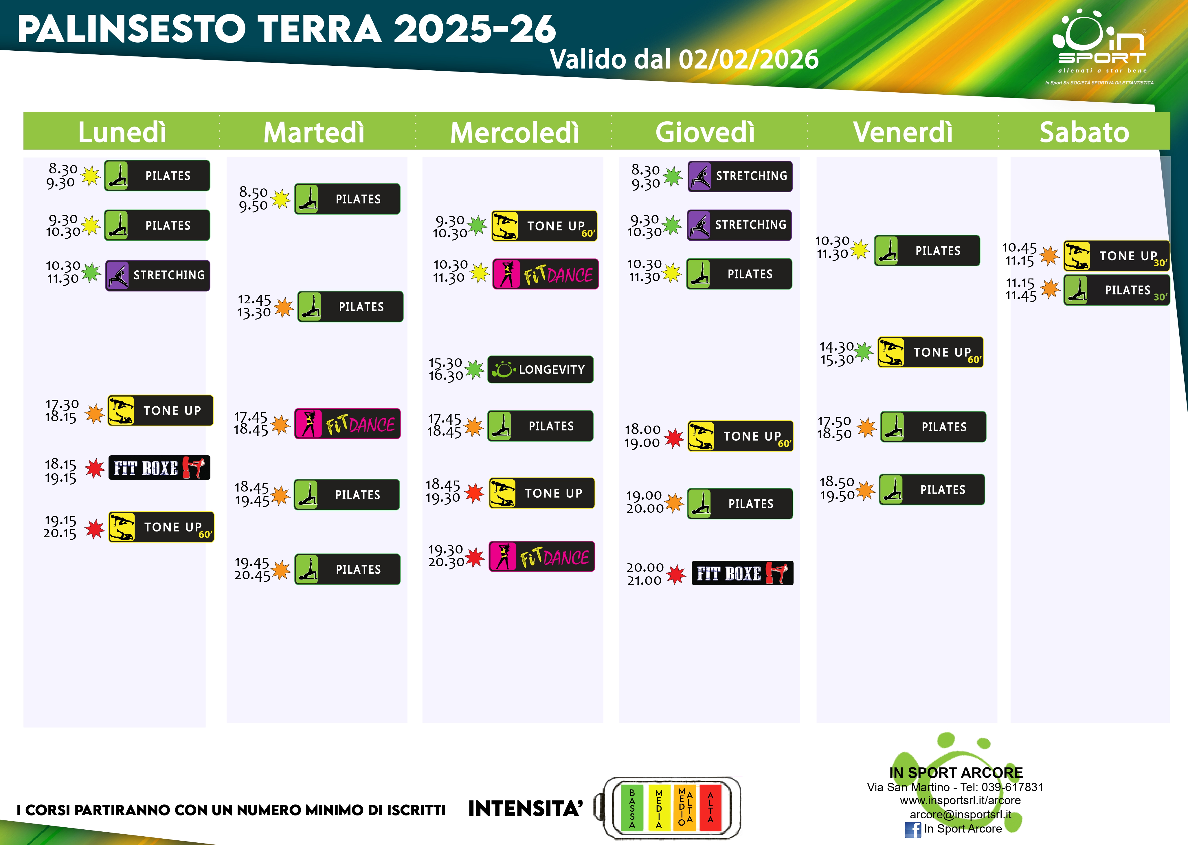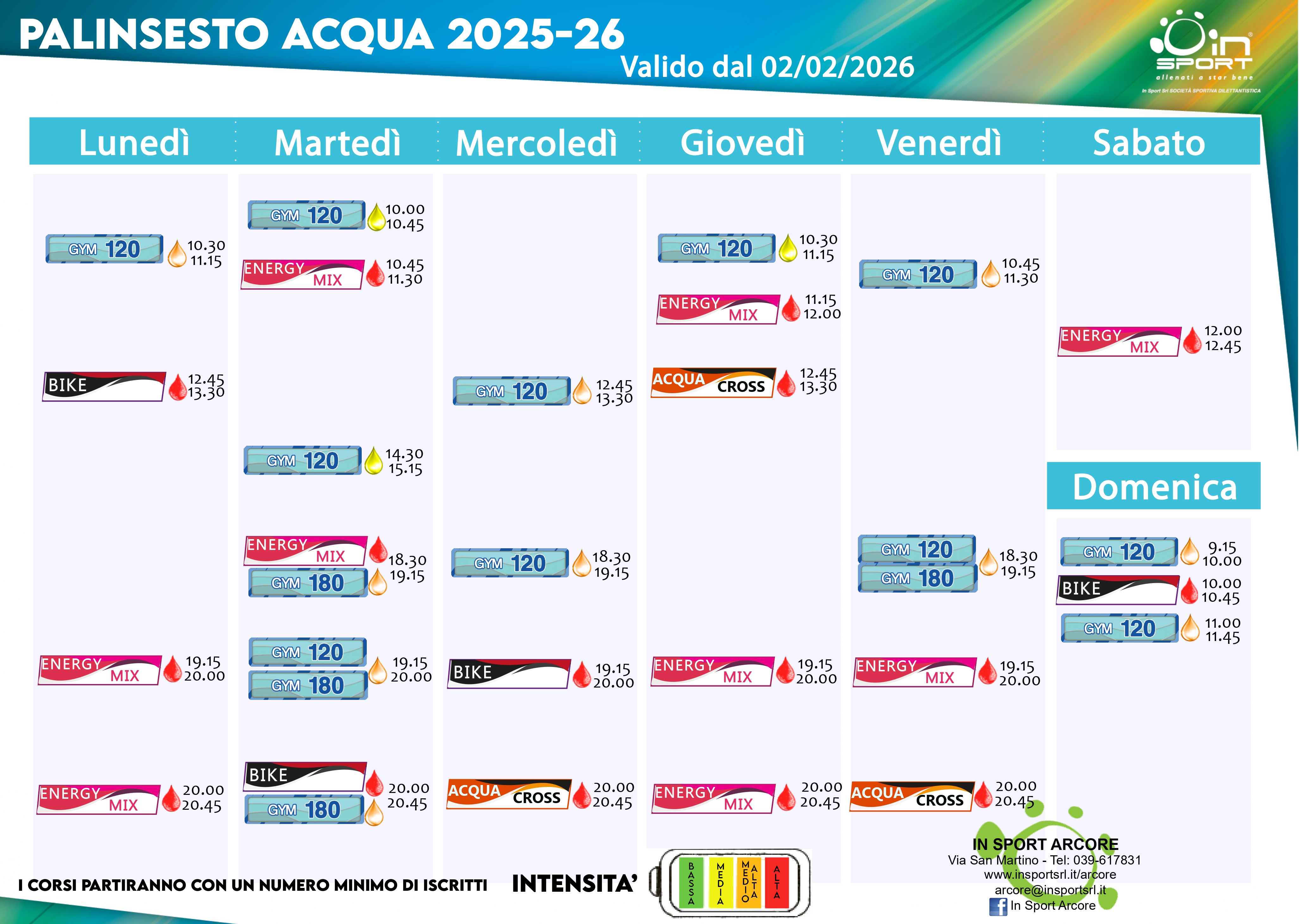 PALINSESTI CORSI FITNESS E ACQUAFITNESS