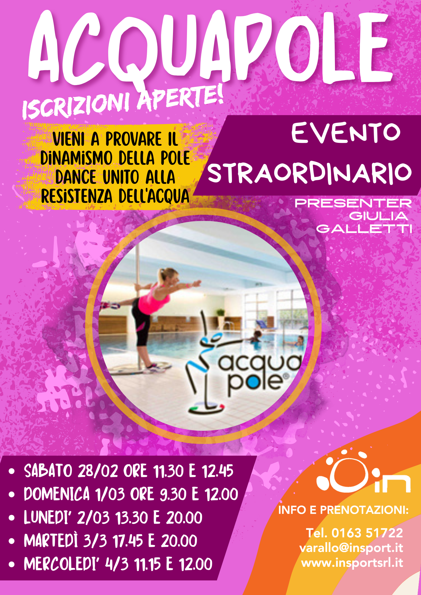 L’Acquapole® è un innovativo attrezzo fitness in acciaio inossidabile posizionato in piscina, che unisce i benefici dell’allenamento in acqua alla pole dance, permettendo di scolpire addome, spalle e fianchi, migliorando la resistenza cardiovascolare. Adatto a tutti, dai 13 anni in su, propone lezioni divertenti, dinamiche e non traumatiche con oltre 150 esercizi