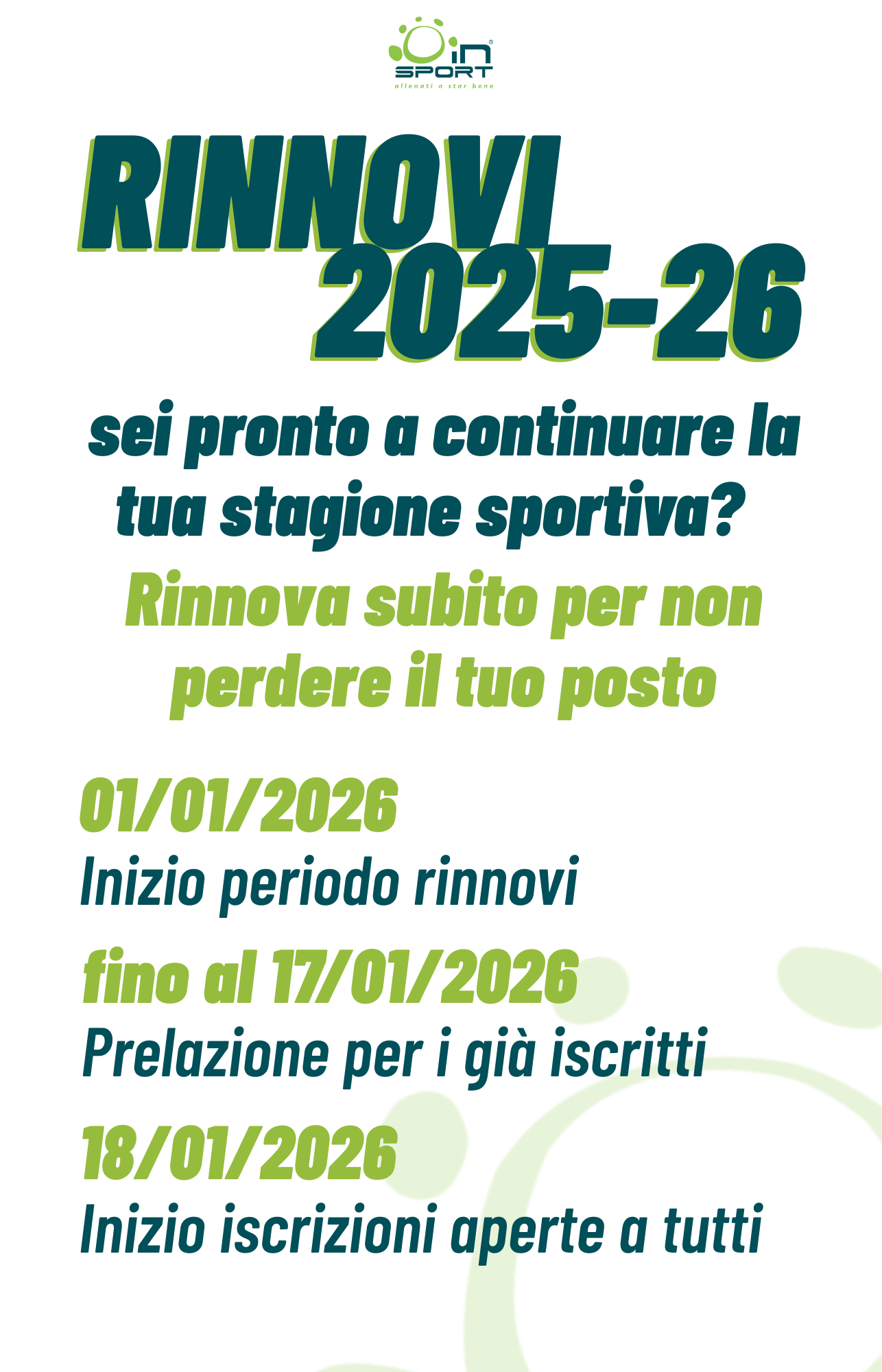 Se la tua iscrizione scade al 28/02/2026 hai tempo fino al 17/01/2026 per rinnovare e garantirti il posto al corso frequentato.